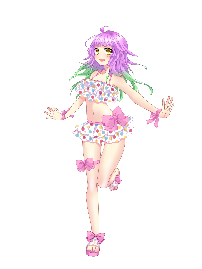 135.4cm 金の瞳 ピンクの髪 普通の肌