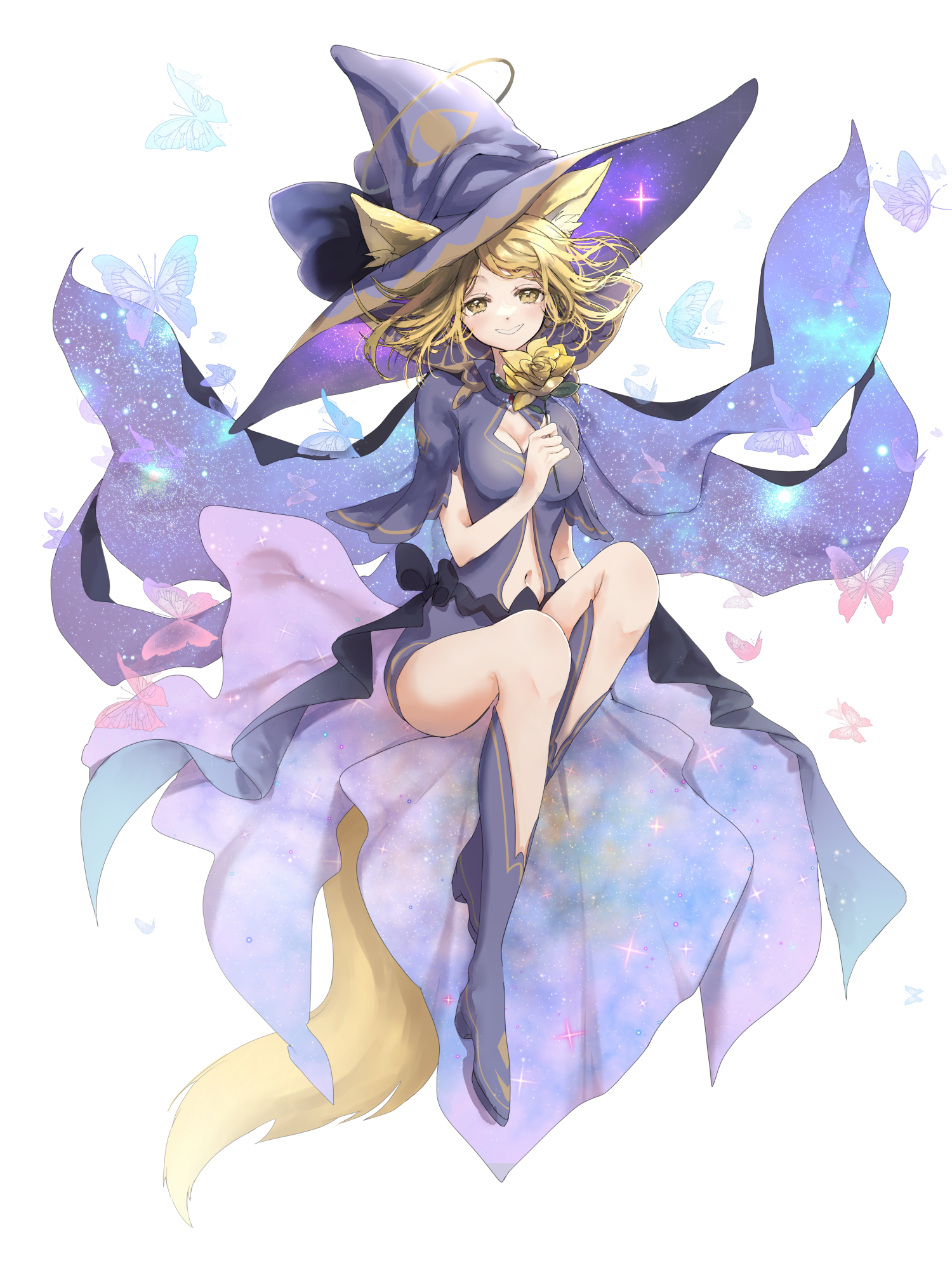 ほほほう、中々面白いことをしておりますなぁ(そんな魔法が目に入り、片手に持ったお肉をかじっている死ぬほど行儀の悪い歩き姿の狐少女。今日はワルプルギスの夜である。せっかくなので派手な魔女っぽい格好とドレス風の衣装に身をまとっていた(スレ画のやつ))