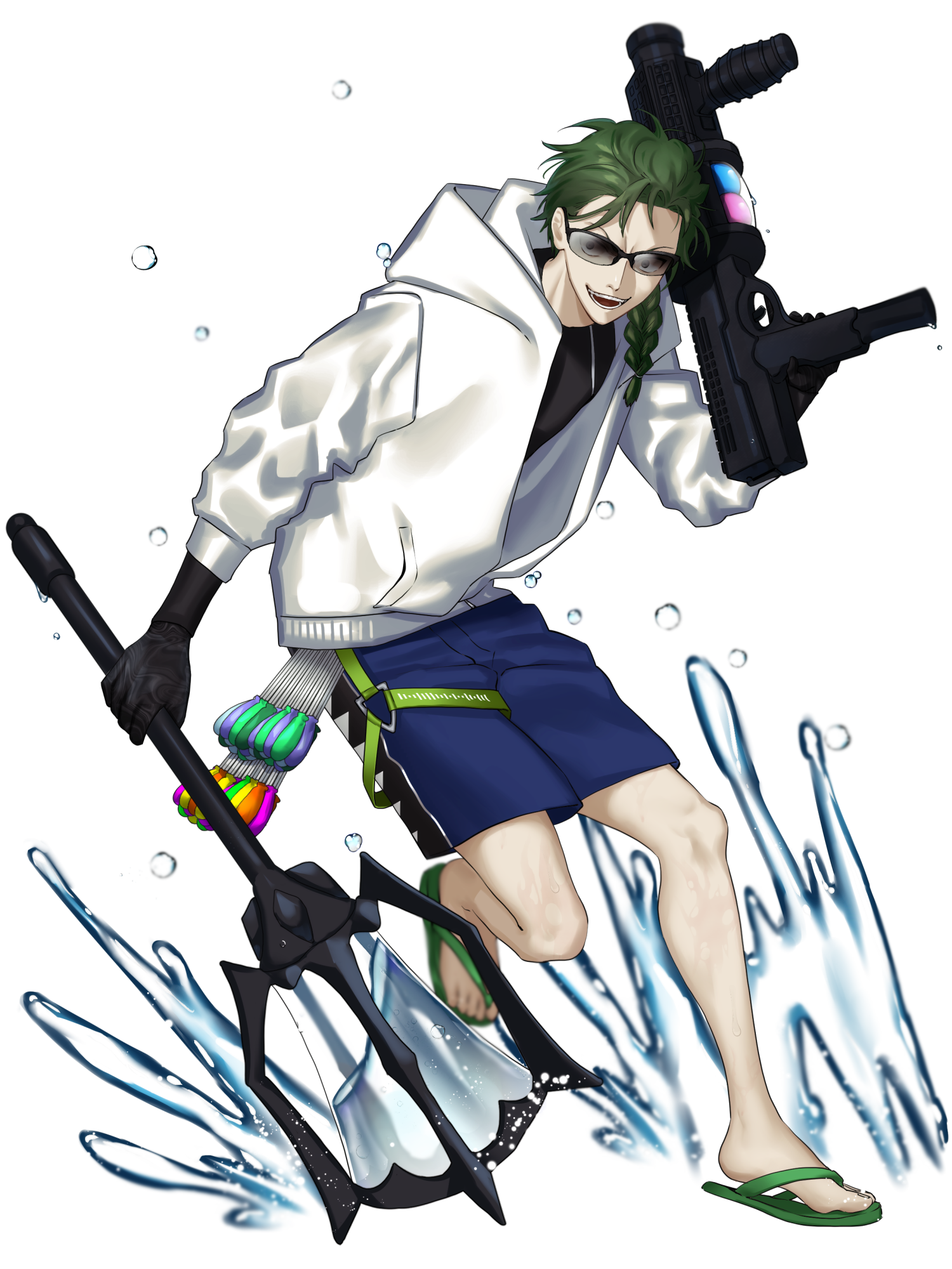 (波を滑り降りると、機腕を振り回すようにして大きくカーブし)