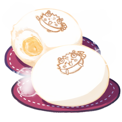 真っ白な生地の中にはマンゴープリン風の餡がぎっしり。やっぱり焼印はランダム。