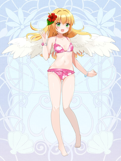 天使の翼を羽ばたかせながら、回転する無数の光の輪を出現させ、敵群へと放ち、斬り裂きます。