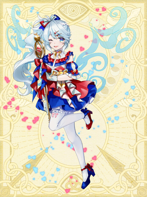 ポップなメロディに乗せてディアボロスとしての決意と信念を歌った、ソラの1stシングルです。マイク兼用の杖『レゾネイト』によって歌声に魔力が籠もり、敵には心を揺さぶられるダメージを、味方には力を奮い起こす勇気をそれぞれ与えます。