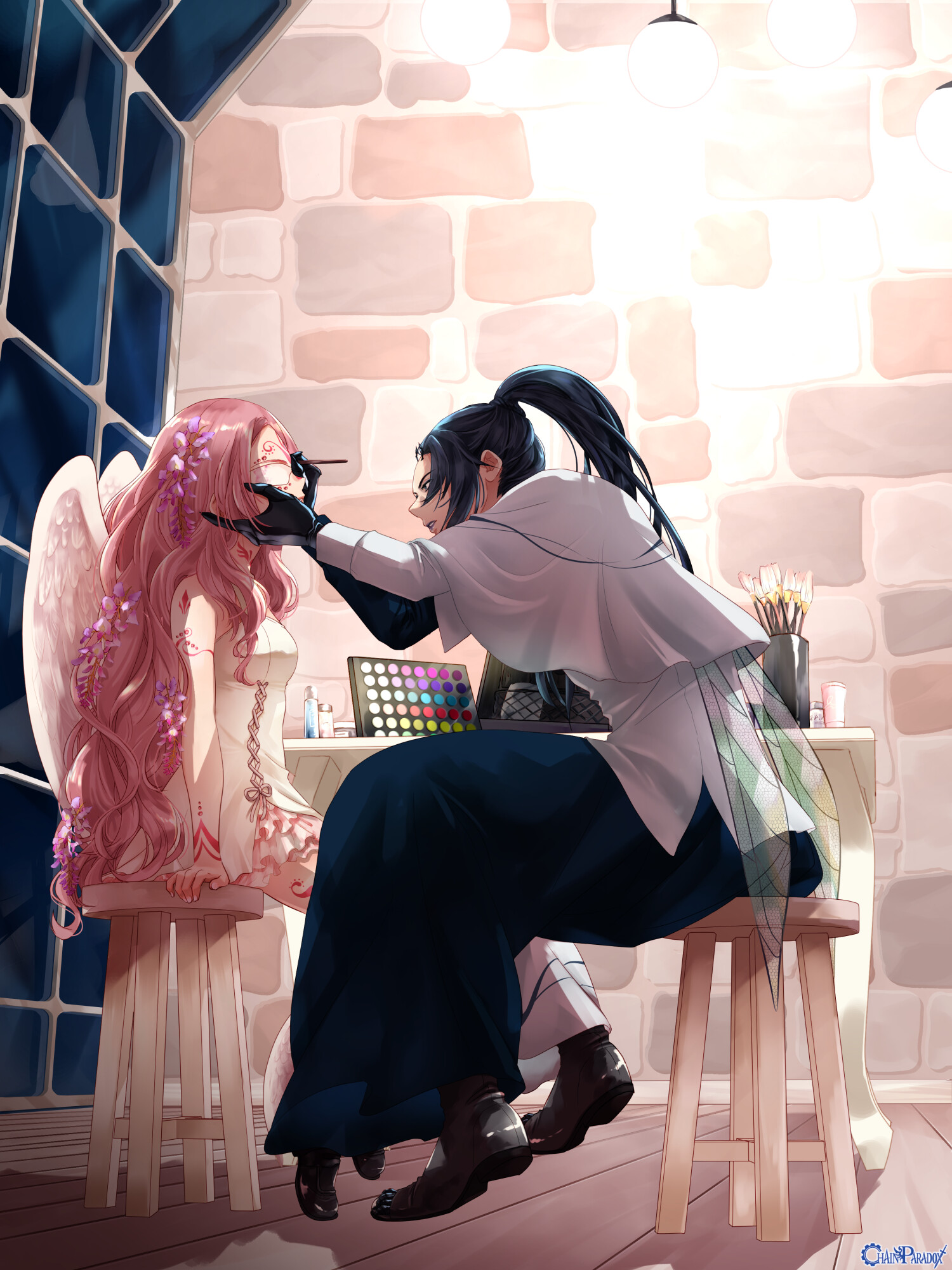 赤を基調とした魔法のメイクを自身とオラトリオのファルシアに施して身体能力を強化。力押し重視の連携戦術を実行する。この際、自身が防御を行って敵のヘイトを集中させた上で、ファルシアが死角からの攻撃を行う。