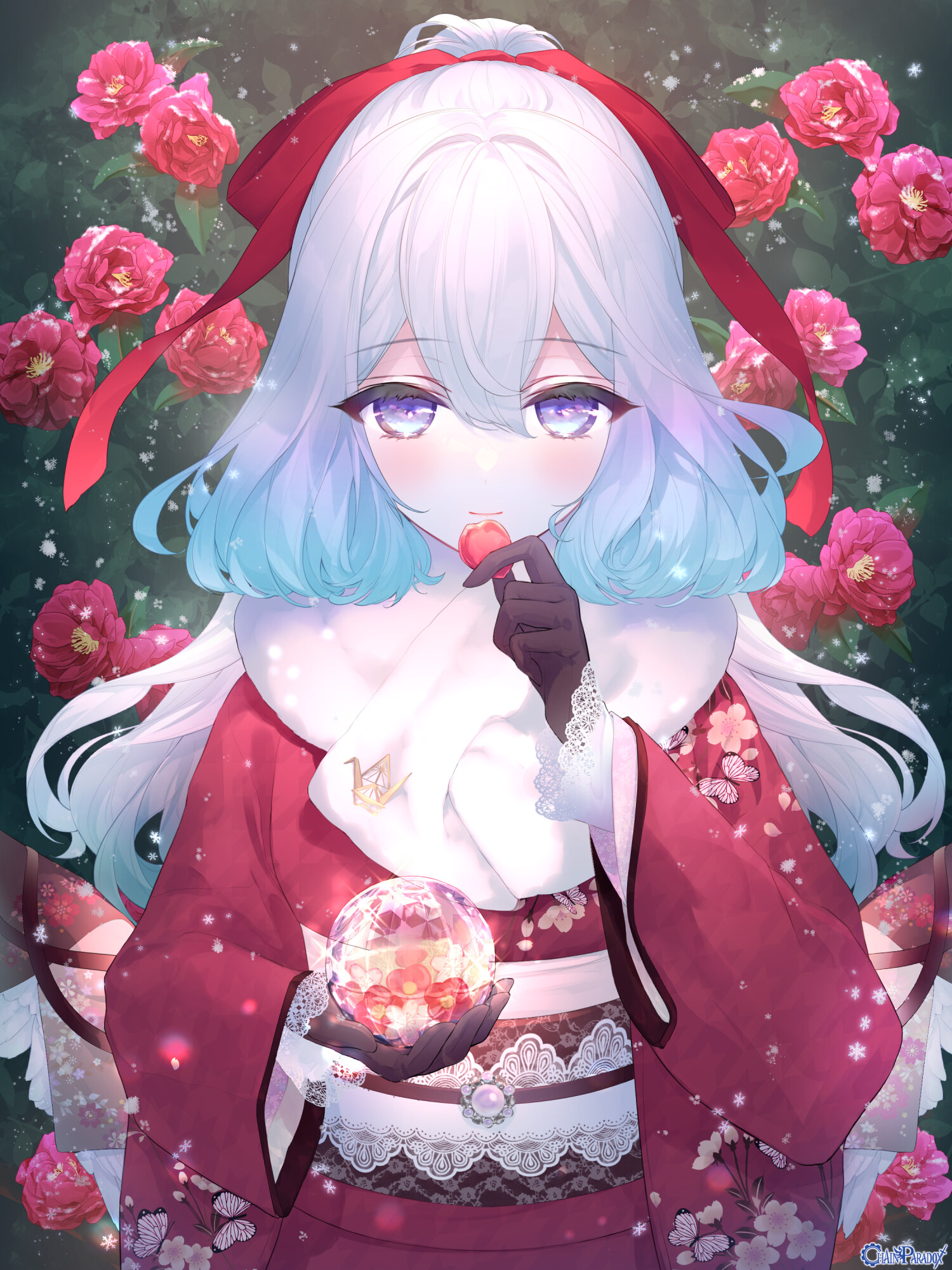 ――りぃん、合図は黒猫の尾が揺らす鈴音、星の導杖、女神の吐息が齎すもの。白銀の景に舞い落ちる六華の星屑は静寂に溶けて凍て往くのみ。想い希うもので雪は変化し、囚え逃がさぬ匣と成る。雪やこんこ 霰やこんこ 降つても降つても まだ降りやまぬ、――ほら、綺麗な華が咲きました