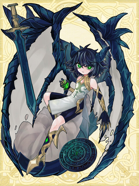 我こそは龍。我こそはドラゴン。我が一刀は星薙と知れ。――幼い身体には不釣り合いであり、龍の巨躯には相応しい、巨大な剣を尾より召喚し、抜き放つ。その一撃は地を薙ぎ、海を断ち、空をも引き裂くという。其は龍王の娘/竜の子にして、幼子の守護者。海へと還りし/海から来たりし奪還者也。