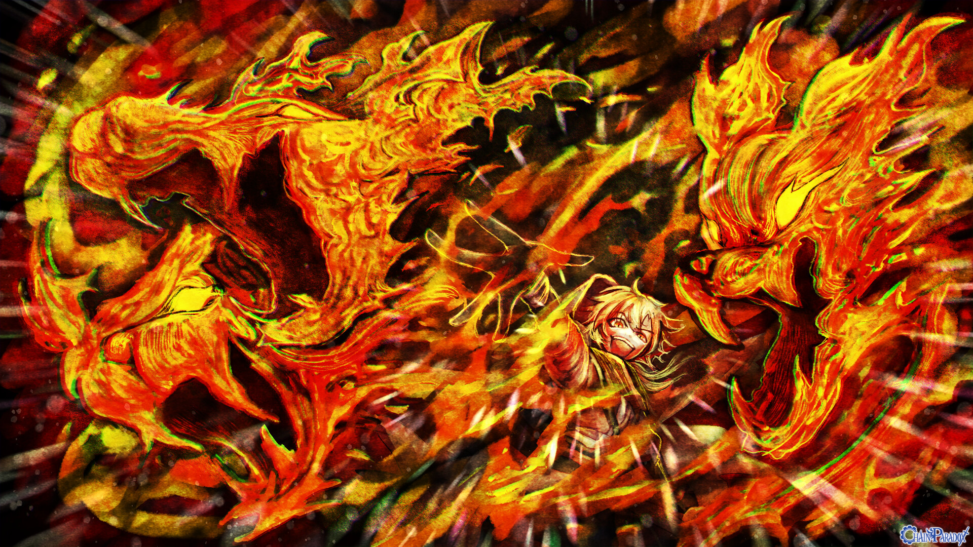 我こそは龍。我こそはドラゴン。我が全霊は烈火と知れ。――幼い身体には不釣り合いであり、龍の巨躯には相応しい、業火を纏った神剣が災厄を焼き斬る。龍王の娘にとって仇であり、剣の山にて共に祀られた荒神由来の技。神剣と共に用いたれた火打ち石の逸話を複合することで、火の属性を得ている。