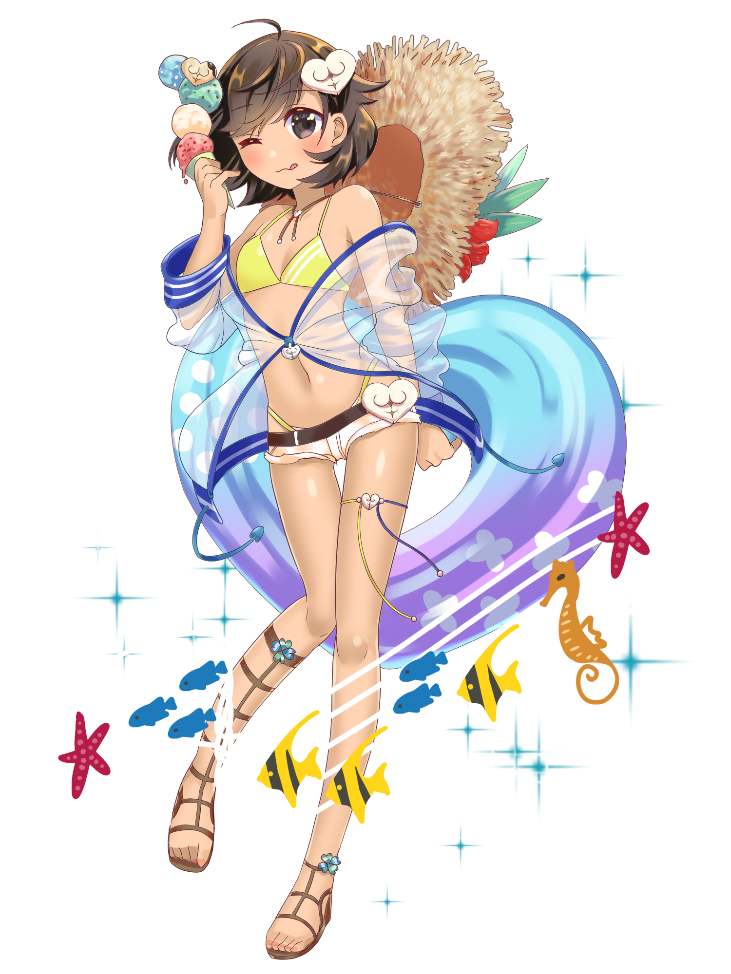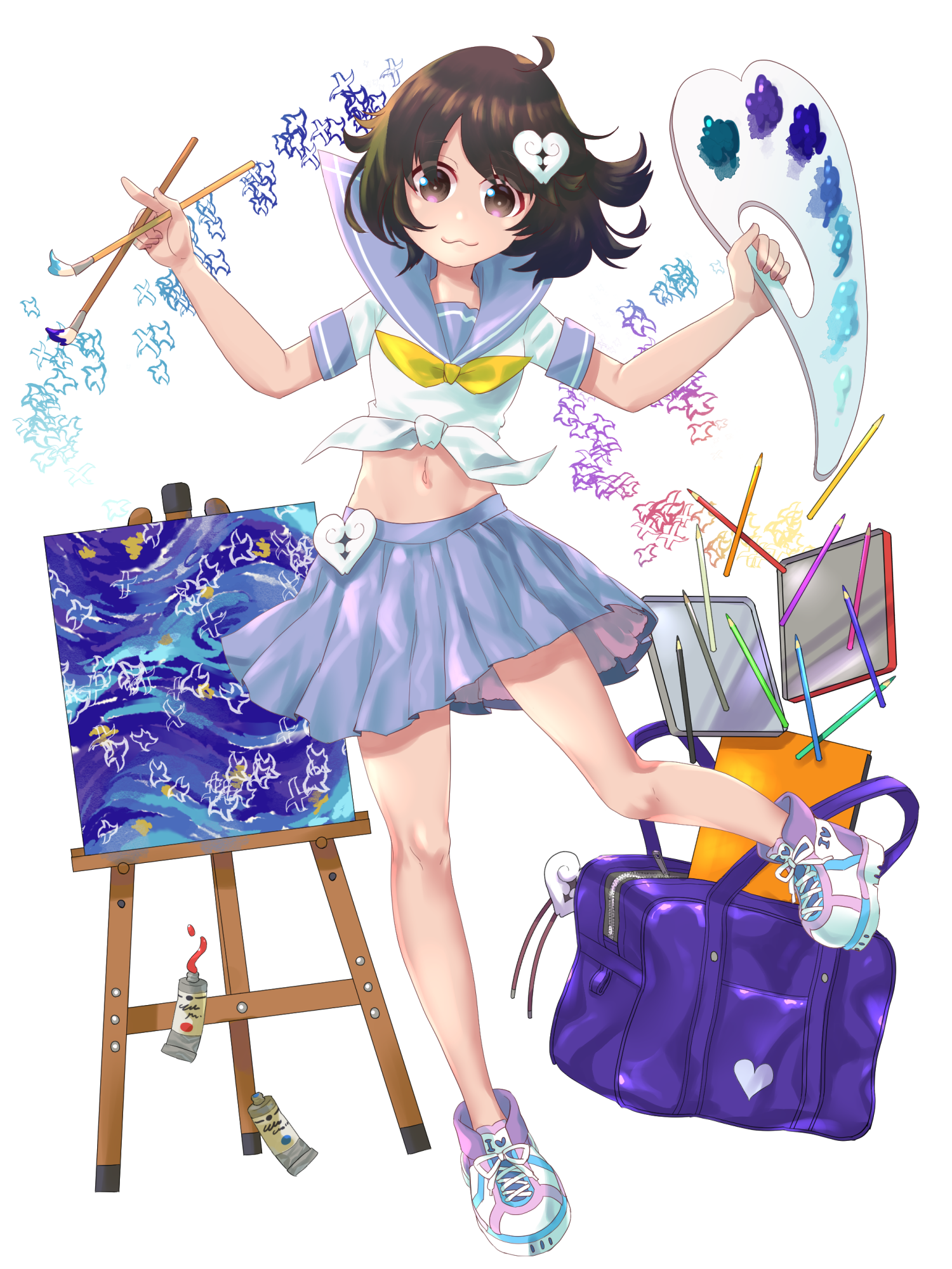 寒い、冷たい、冬のイメージを込めた「空気」をキャンバスに描いたあと、輪郭だけの鳥をたくさんたくさん描き足す。キャンバスから溢れた輪郭の鳥たちは、周囲を舞いながら「冷たさ」をその中に取り込んで、辺りの冷気を抑えてくれる。タマキが指示すれば鳥たちは敵へと一斉に飛んで敵を凍りつかせる。