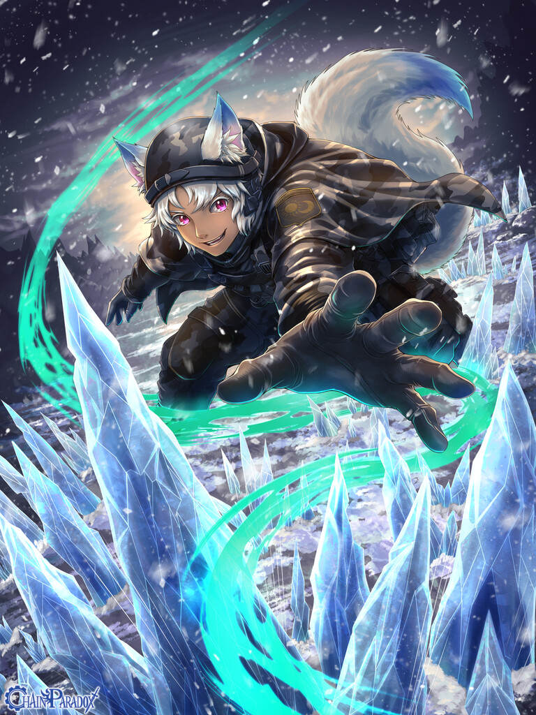 出現させた「球状の氷塊」から、猛烈な吹雪を放ち、敵を凍てつかせます。