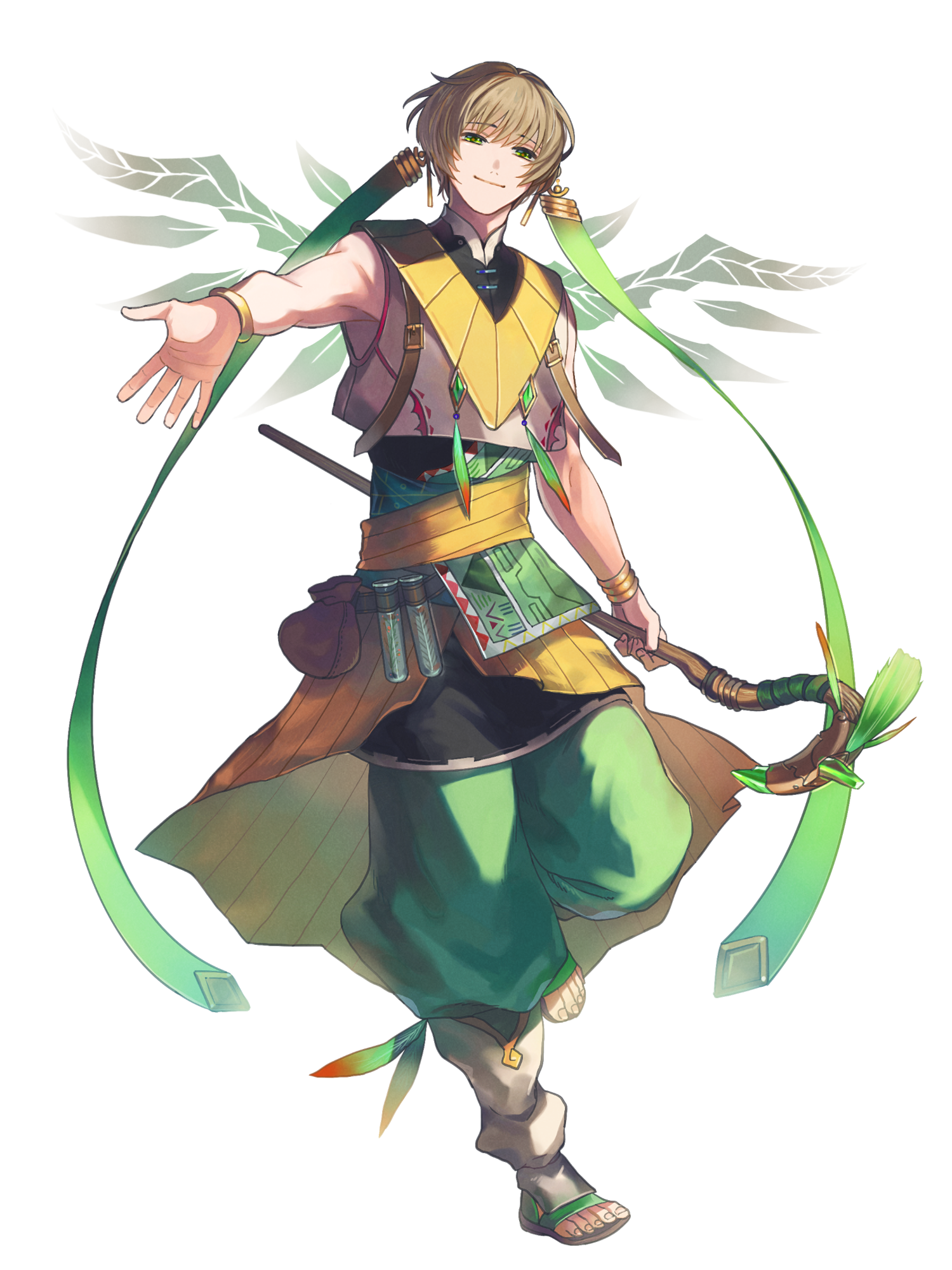 自身の魔力を糧に赤い鳥型(大きさ・魔法の属性は任意で変化)の矢を放つ。それらは自由に飛翔しながら、敵を追いかけ貫く。羽搏き舞い散る羽根は味方の次の攻撃力と命中率を上げる。小さくとも鳥たちは己の翼を広げ、どこまででも飛翔する。