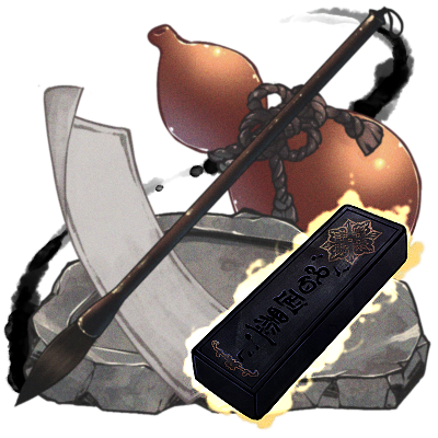 符を書くのに使う、古来からの製法による墨。磨って減っても気付けば元に戻っている。