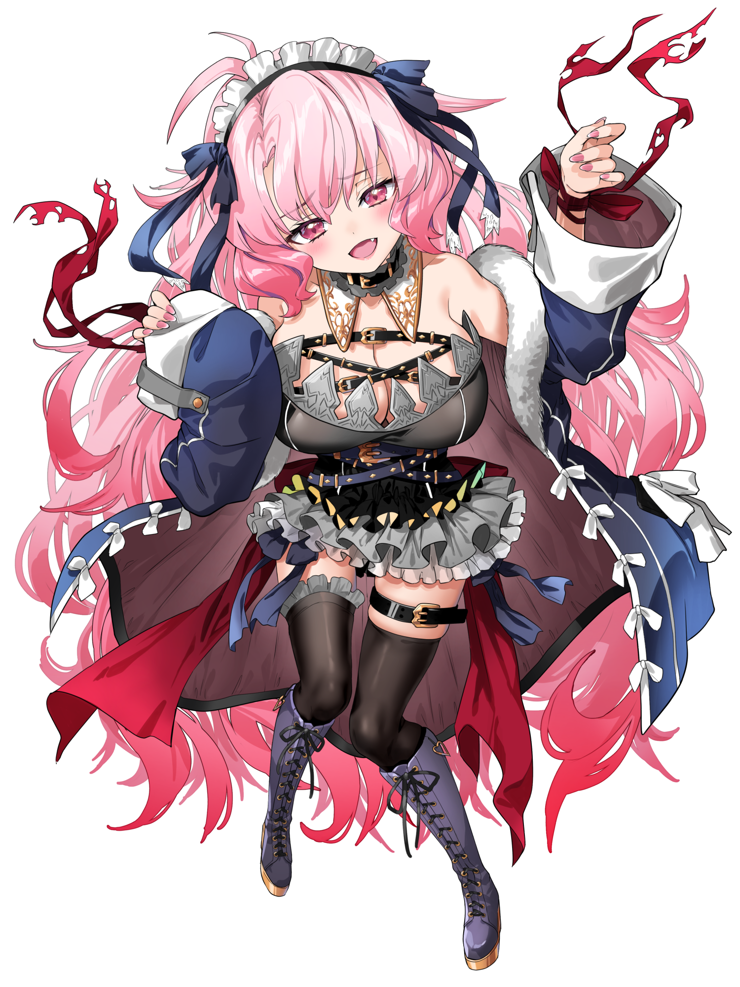 赤い編み紐がワンアクセントになった、鮮やかな桃色の前開けパーカー。少し大きめ。