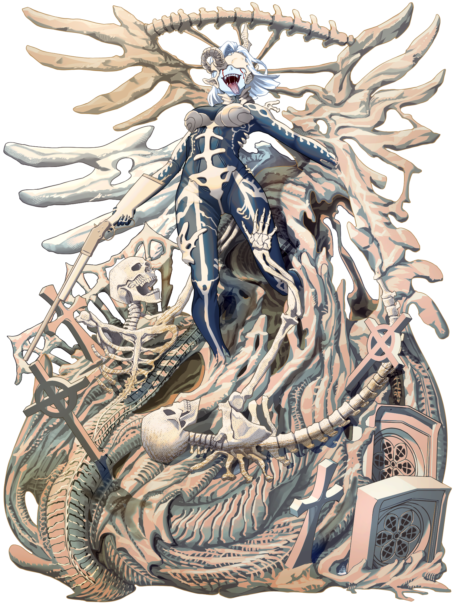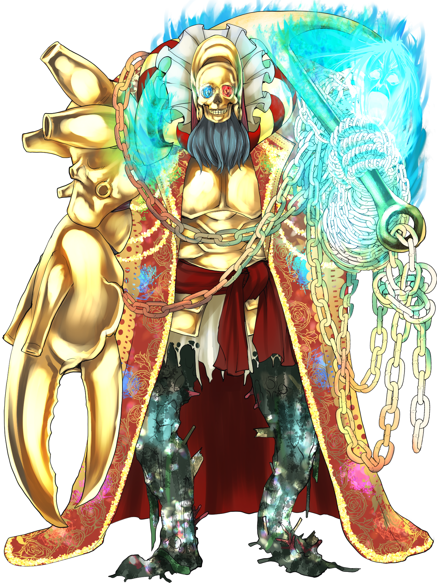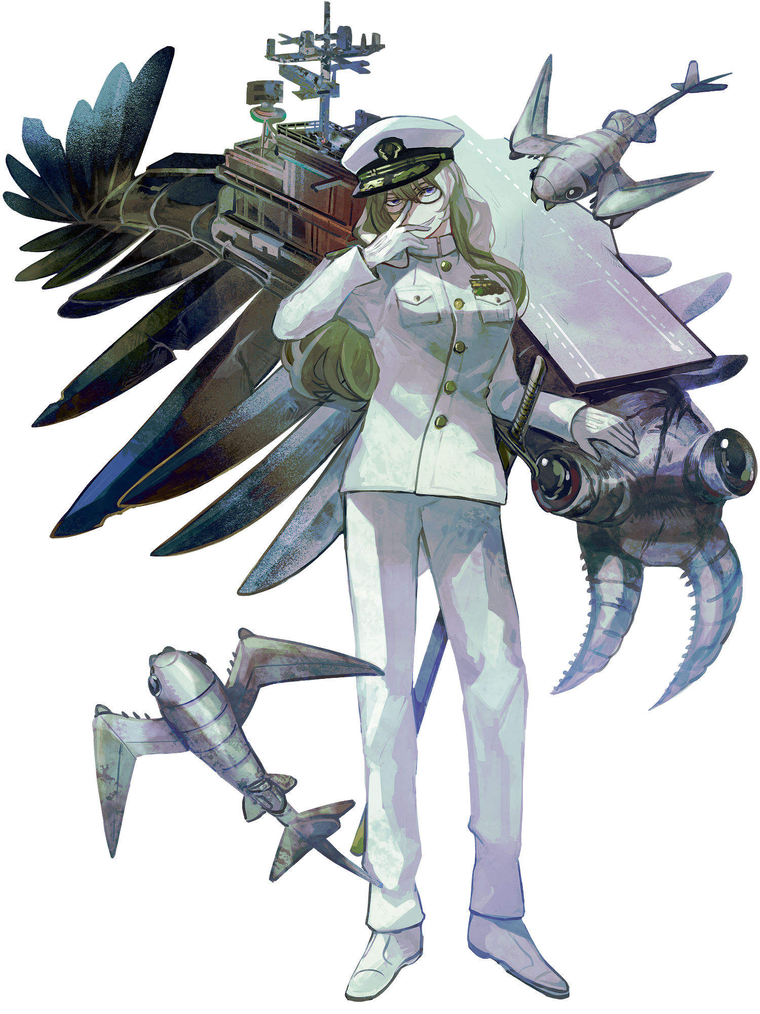 太平洋の広い地域にまたがるディヴィジョン『冥海機ヤ・ウマト』を支配する、人間が「第二次大戦期前後の兵器」や「海の生物」と融合したような姿のクロノヴェーダです。『海戦』にまつわる人間の感情の動きや落命からエネルギーを回収します。