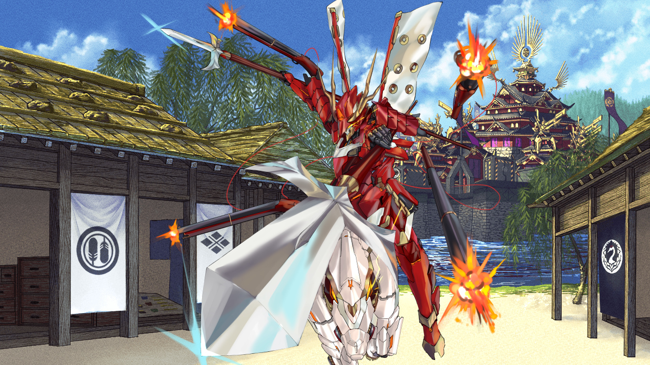 摂津国の大名であり、『断片の王』候補でもある有力ジェネラル級天魔武者『豊臣秀吉』は二の丸に戦力を集めると共に、三の丸の正面に配置されていた部隊を回り込ませ、巨大神像の破壊を目論んでいます。