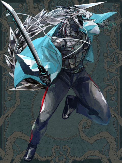腕に剣、尻尾も刃、装甲に覆われて、あんたは全身武器って感じだね
