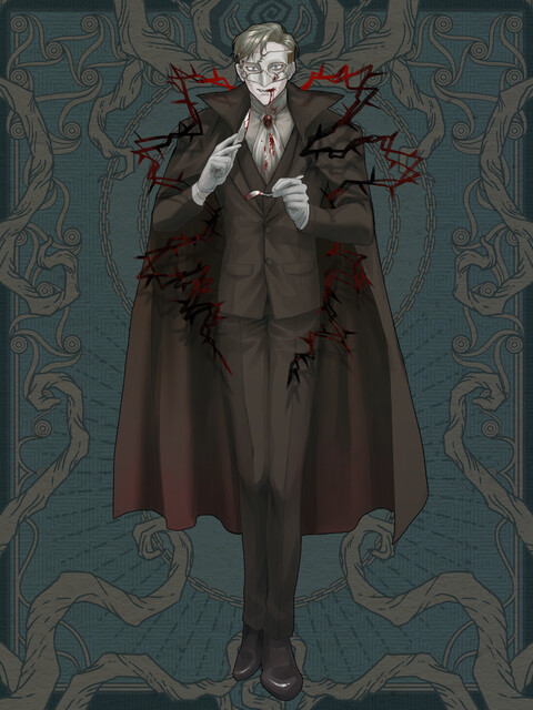 背中から刃物が突き出たことで、吸血鬼のマントは引きちぎれ、ボロボロになった。